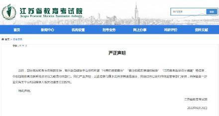 摘要:严正声明:近日,部分网友和考生向我院反映,有少数自媒体平台发布所谓“付费可提前查分”“高价权威志愿填报指导”“江苏高考数学均分揭露”等信息,个别自媒体更将联系地点